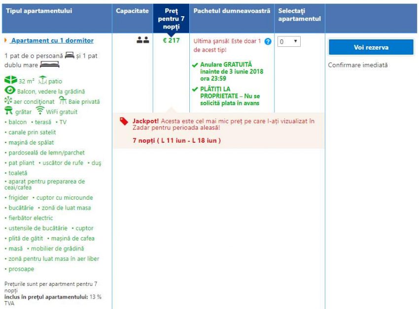 - Cazare 1: Apartment Maja – 213 euro / 7 nopti / camera dubla