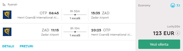 - Zbor: Bucuresti – Zadar, 123 euro, dus-intors, operat de Ryanair