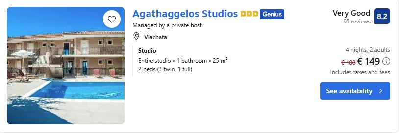 - Cazare (opt. 1): Agathaggelos Studios – 149 euro
