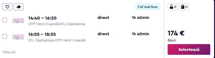 - Zbor: Bucuresti – Kefalonia, 174 euro