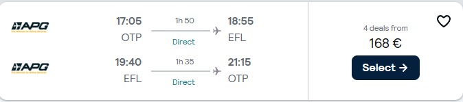 - Zbor: Bucuresti – Argostoli, 168 euro, dus-intors, operat de APG