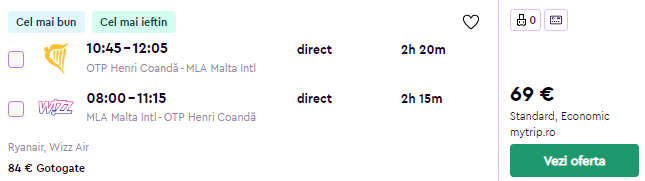 - Zbor Bucuresti – Malta, 69 euro, dus-intors, operat de Ryanair si Wizz Air