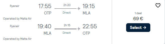 - Zbor: Bucuresti – Malta, 69 euro, dus-intors, operat de Malta Air