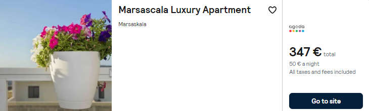 - Cazare (opt. 1): Marsascala Luxury Apartment – 347 euro / 7 nopti / camera dubla