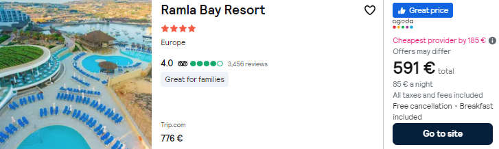 - Cazare (opt. 4): Ramla Bay Resort – 591 euro / 7 nopti / camera dubla