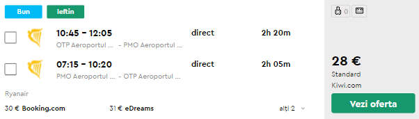 - Zbor Bucuresti – Palermo, 28 euro, dus-intors, operat de Ryanair