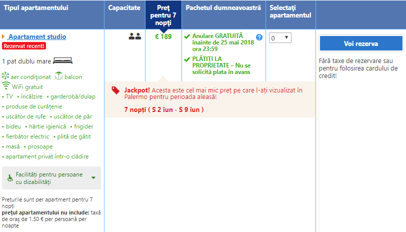 - Cazare 2: Ai giardini della zisa – 242 euro / 7 nopti / apartament / taxe incluse