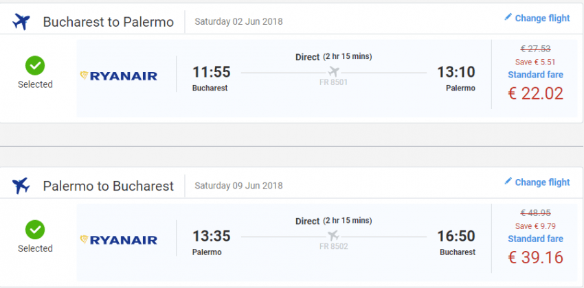 - Zbor: Bucuresti – Palermo, 61 euro, dus-intors, operat de Ryanair