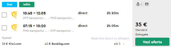 - Zbor Bucuresti – Palermo, 35 euro, dus-intors, operat de Ryanair