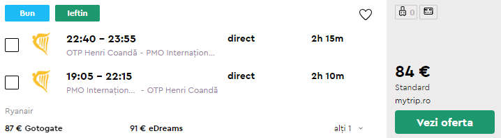 - Zbor Bucuresti – Palermo, 84 euro, dus-intors, operat de Ryanair
