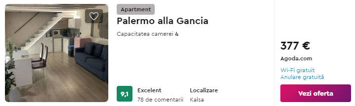 - Cazare (opt. 2) Palermo alla Gancia – 377 euro / 7 nopti / camera dubla