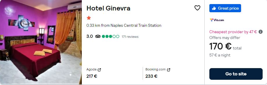 - Cazare (opt. 1 – Napoli): Hotel Ginevra – 170 euro / 3 nopti / camera dubla