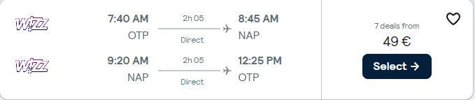 - Zbor: Bucuresti – Napoli, 49 euro, dus-intors, operat de Napoli