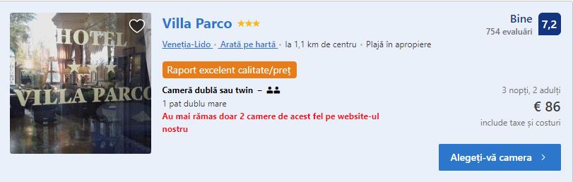 - Cazare 2: Hotel Villa Parco – 86 euro / 3 nopti / camera dubla
