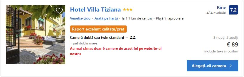 - Cazare 3: Villa Tiziana Hotel – 89 euro / 3 nopti / camera dubla