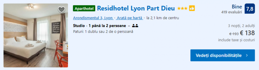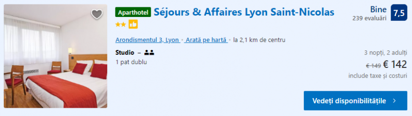 - Cazare 2: Séjours And Affaires Lyon Saint Nicolas – 142 euro / 3 nopti ./ camera dubla