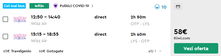 - Zbor: Bucuresti – Lyon, 58 euro, dus-intors, operat de Wizz Air