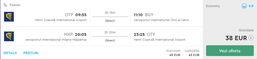 - Zbor: Bucuresti – Milano, 38 euro, dus-intors, operat de Ryanair