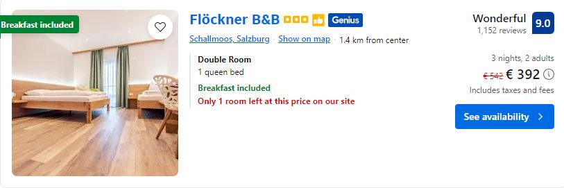 - Cazare (opt. 3): Flöckner B&B – 392 euro / 3 nopti / camera dubla / mic dejun