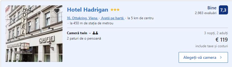 - Cazare 2: Hotel Hadrigan – 119 euro / 3 nopti / camera dubla