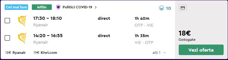 - Zbor: Bucuresti – Viena, 18 euro, dus-intors, operat de Ryanair