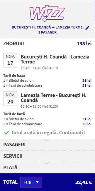 - Zboruri: 65 euro / 2 = 32.5 euro/p