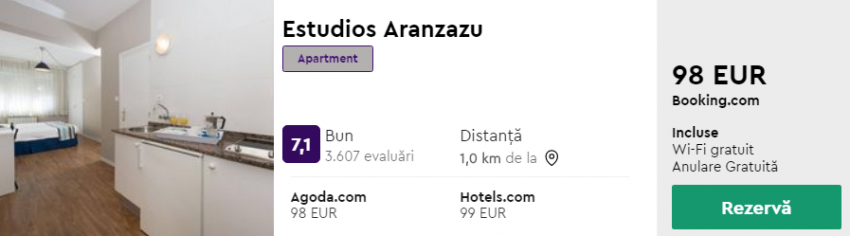 - Cazare 1: Estudios Aranzazu – 98 euro / 3 nopti / camera dubla