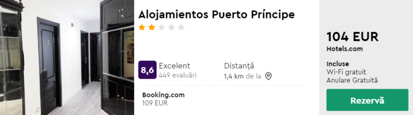 - Cazare 2: Alojamientos Puerto Príncipe – 104 euro / 3 nopti / camera dubla