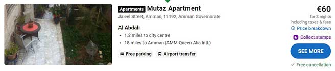 - Cazare 1: Mutaz Apartment – 60 euro / 3 nopti / camera dubla