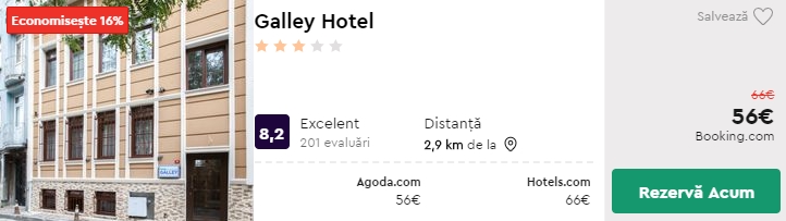 - Cazare 1: Galley Hotel – 56 euro / 3 nopti / camera dubla