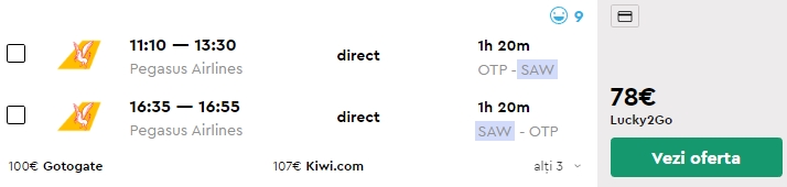- Zbor: Bucuresti – Istanbul, 78 euro, dus-intors, operat de Pegasus Airlines