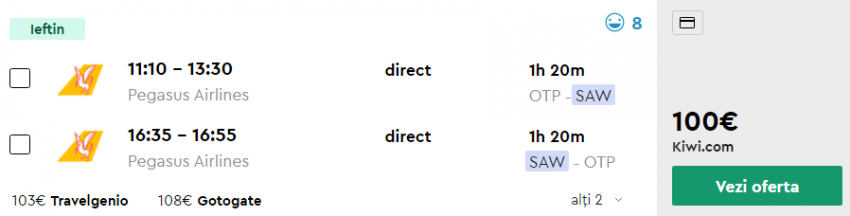 - Zbor: Bucuresti – Istanbul, 100 euro, dus-intors, operat de Pegasus Airlines