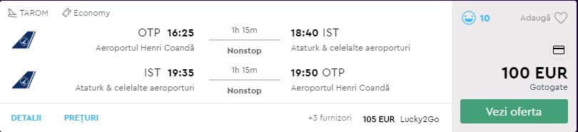 - Zbor: Bucuresti – Istanbul, 100 euro, dus-intors, TAROM (bagaj cala inclus)