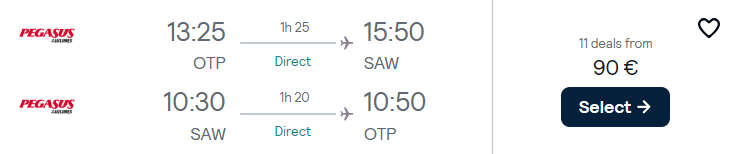 - Zbor: Bucuresti – Istanbul, 90 euro, dus-intors, operat de Pegasus Airlines