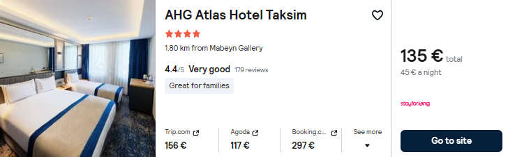 - Cazare (opt. 3): AHG Atlas Hotel Taksim 4* – 135 euro / 3 nopti / camera dubla