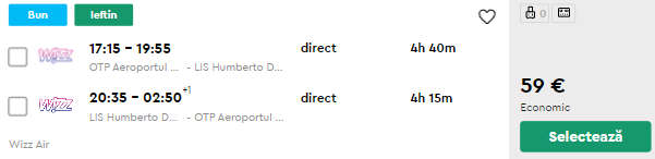 - Zbor Bucuresti – Lisabona, 59 euro, dus-intors, operat de Wizz Air