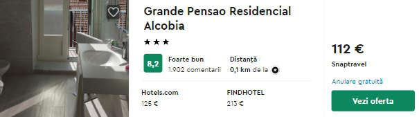 - Cazare (opt. 2) Grande Pensao Residencial Alcobia – 112 euro / 3 nopti / camera dubla