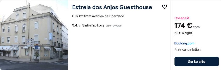 - Cazare (opt. 1): Estrela dos Anjos Guesthouse – 174€ / 3 nopti / camera dubla