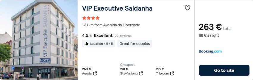 - Cazare (opt. 3): VIP Executive Saldanha – 263€ / 3 nopti / camera dubla / mic dejun inclus