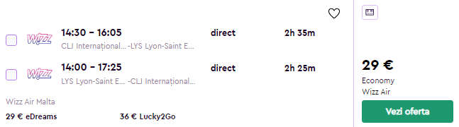 - Zbor Cluj – Lyon, 32 euro, dus-intors, operat de Wizz Air