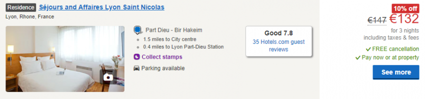 - Cazare 1: Séjours & Affaires Lyon Park Lane – 132 euro / 3 nopti / camera dubla