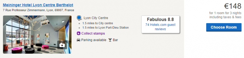- Cazare 3: Meininger Hotel Lyon Centre Berthelot – 148 euro / 3 nopti / camera dubla.