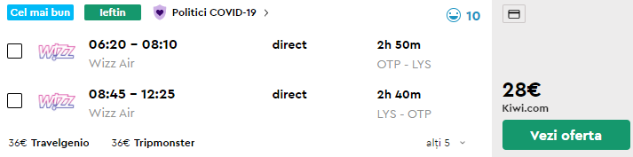 - Zbor: Bucuresti – Lyon, 28 euro, dus-intors, operat de Wizz Air