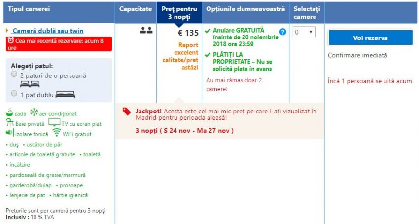 - Cazare 2: Vertice Roomspace Madrid – 137 euro / 3 nopti / camera dubla / taxe incluse
