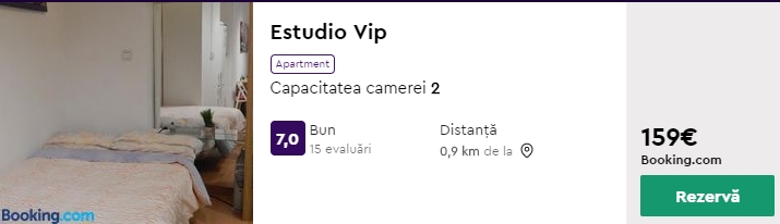 - Cazare 3: Estudio Vip – 159 euro / 3 nopti / camera dubla