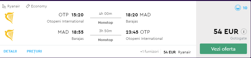 - Zbor: Bucuresti – Madrid, 54 euro, Ryanair