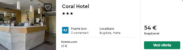 - Cazare (opt. 2) Coral Hotel – 54 euro / 3 nopti / camera dubla