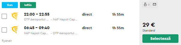 - Zbor Bucuresti – Napoli, 29 euro, dus-intors, operat de Ryanair