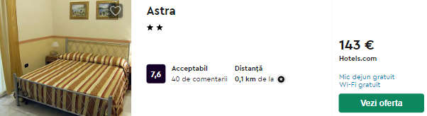 - Cazare (opt.1) Astra – 143 euro / 3 nopti / camera dubla
