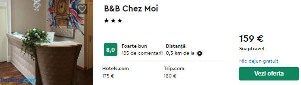 - Cazare (opt. 2) B&B Chez Moi – 159 euro / 3 nopti / camera dubla